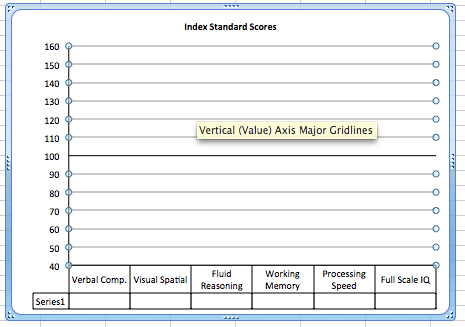 I've created a excel document [mac 2011] to graph test results so that I can then paste the graph into my psychological reports. I want to format a single grid line, so that it is easy for parents to see where the average score is. I know that this is possible, because I've somehow done it in two of my graphs, but I can't figure out how I did it, after more than an hour of trying to figure it out. Frustrating to say the least.