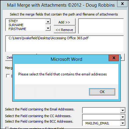 Do NOT open the MergeTools – 20150422.dotm file.(There are no user serviceable parts inside and it should NOT be used as the basis for creating your mail merge main document.)