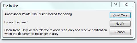 Can anyone help me with this? I keep getting an error message that reads "File is locked for editing by another user" when there is no one else using the file. It doesn't matter what Excel file I try to open, I still get this message.