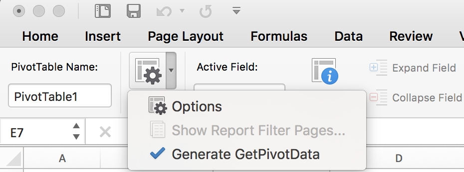 Jim G 134K Reputation points MVP Volunteer Moderator2015-08-28T17:01:03+00:00 Shane is correct. GetPivotTable is always on in Excel on the Mac.