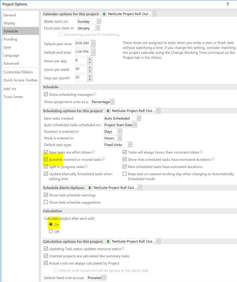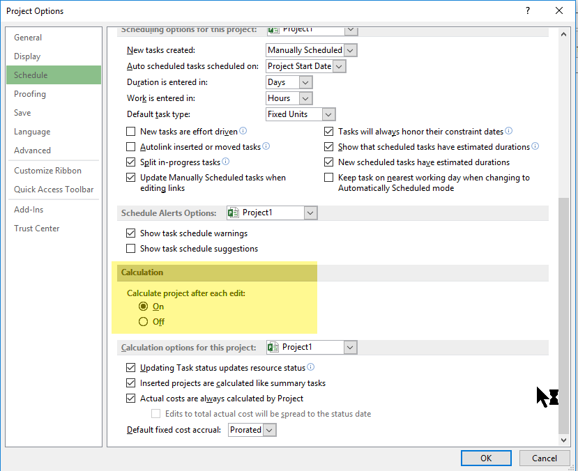 Dates not updating automatically in MS Project Std 2016