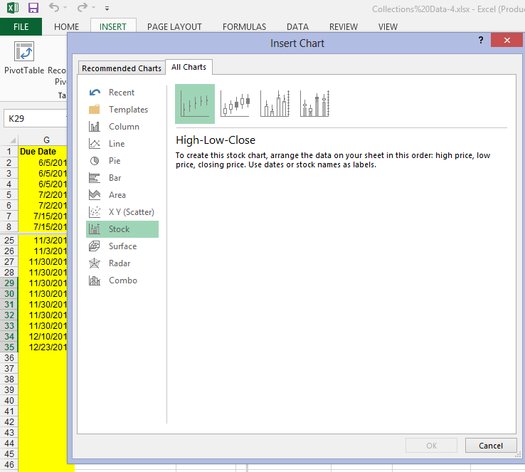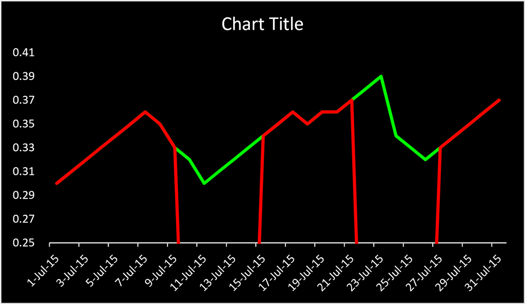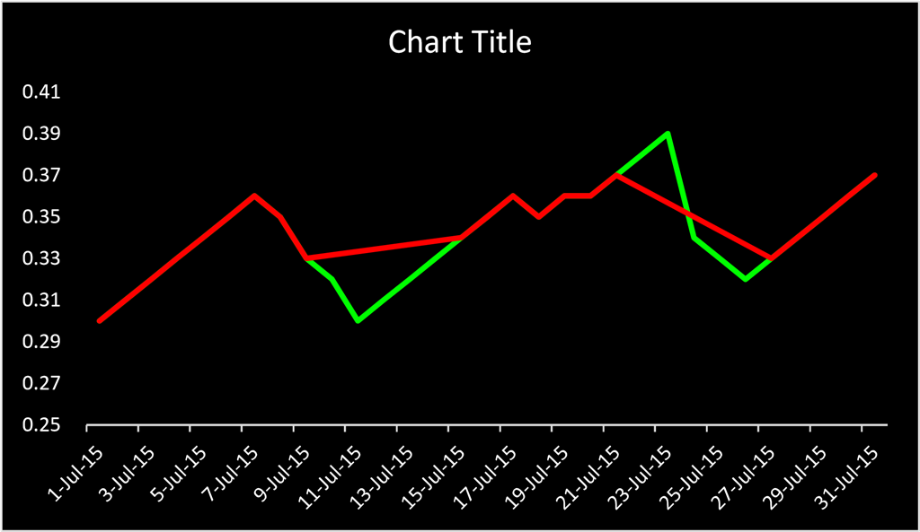 The X data is dates (days of the week) and the Y data is stock prices. I have produced two time series. One is 'all' prices (the green series), and overlaid on top of this is the red series (negative price trend). It should look like this: