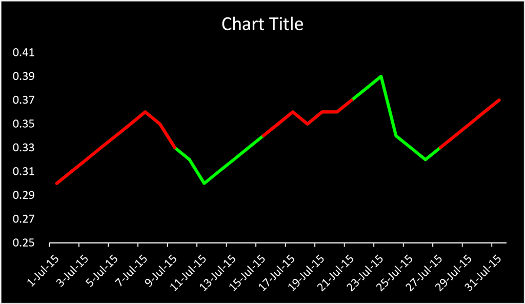I want to produce a conditional line chart that is green when my quant model says the stock price is going up and red when my model says the stock price is going down.