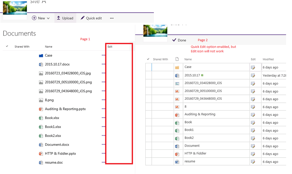 After clicking Quick Edit button in a library, the Edit button in the Edit (link to edit item) column will show. However, clicking on it gets no response.
