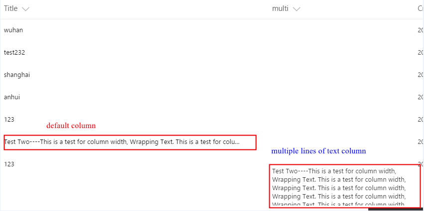 Unlike the classic experience of SharePoint Online list, in the new experience, the text in a list column will not wrap unless we choose Multiple lines of text when creating the column (and select Enhanced rich text in Additional Column Settings).