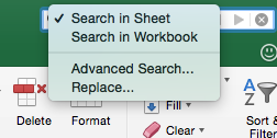 Based on your description, you cannot find terms via Find Function in Excel 2016 for Mac. I would like to suggest you check the following: