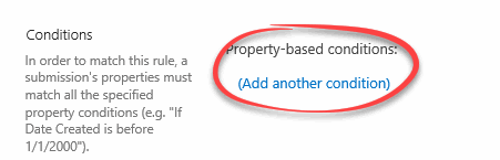 To set multiple conditions for creating Content Organizer Rules in SharePoint Designer, please click Condition in the Insert group on the Ribbon several times, and then assign values for the fields.