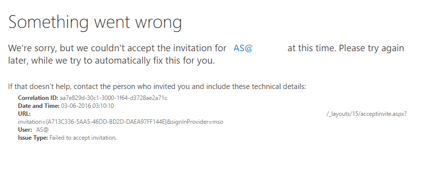Regarding the “failed to accept invite” error, I have done some research and found that a community member mentioned that it can take 12-24 hours until the external user is removed from the SharePoint site, so I would suggest you wait for some time and re-invite the user to see if that makes a difference. For your reference: