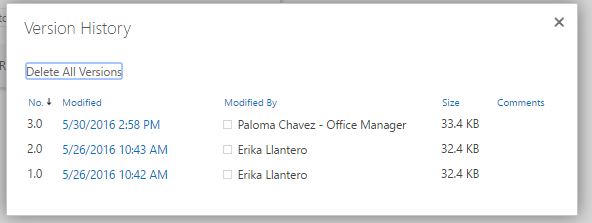 i had to go in and create the changes from my computer on 05/30 for her. see screenshot of versions below: