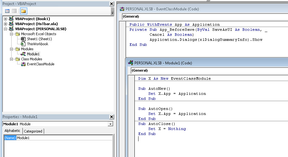 Also, Excel doesn't have a direct equivalent to Word's AutoNew (which runs when you start a new document based on a template that contains that macro). You may as well delete the AutoNew macro from the Excel sheet and just leave it in Word. If you need that functionality in Excel, see this thread.