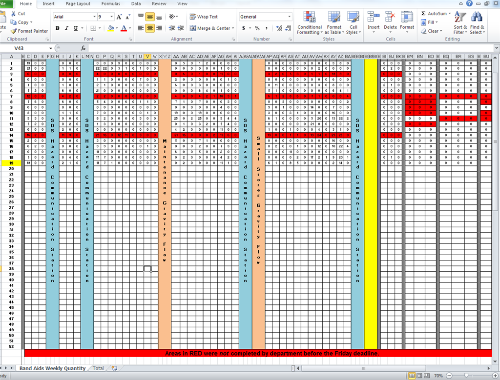 · Want the red fill to disappear (cell by cell) once any value is typed into that cell.