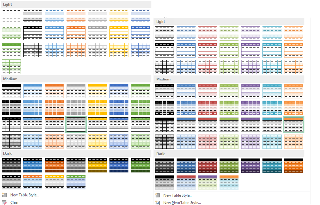 The first one looks like the default "Office" theme, with an additional, "custom" light colored table style <edit