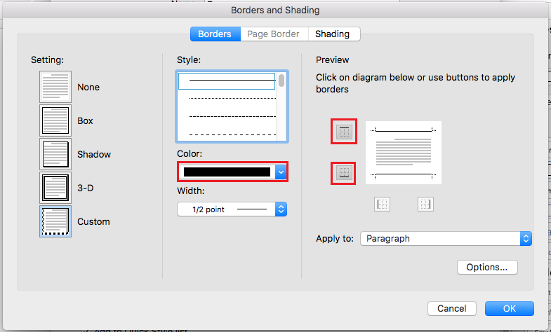 And then select the color, top and bottom border, and click OK as shown in the following screenshot.