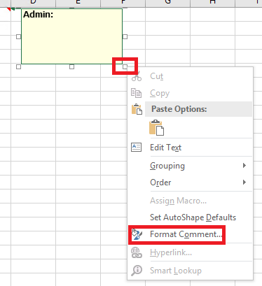 2.select the margin of the comment and right click it as shown below>choose format comment. note: don't select the content of the comments, or you can only see font in the format comment.