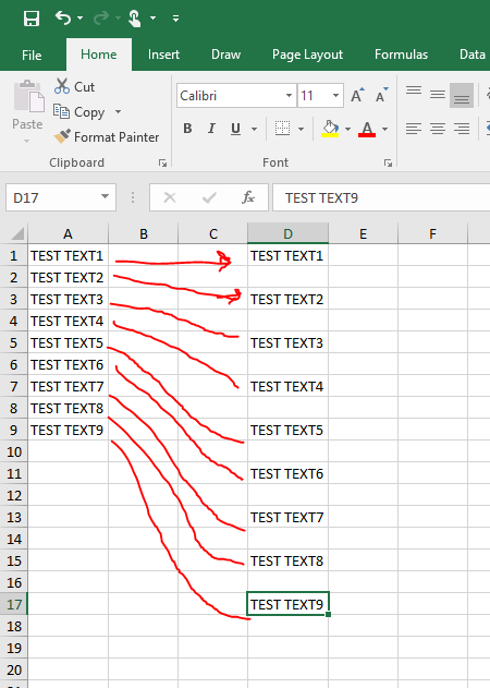 Long story short, I want to put data in an excel sheet that has no spacing to a sheet in which the destination has spacing in between them.