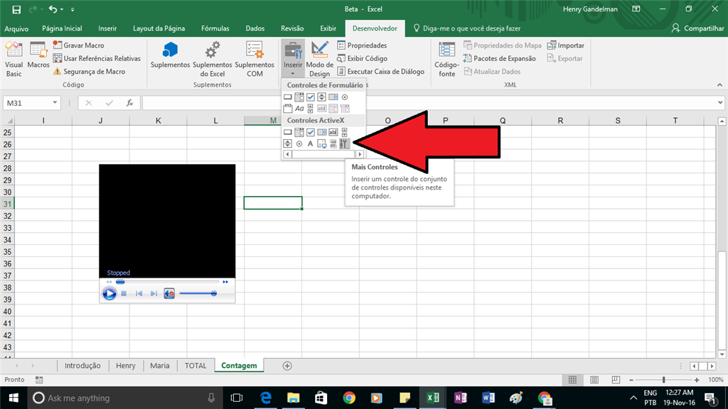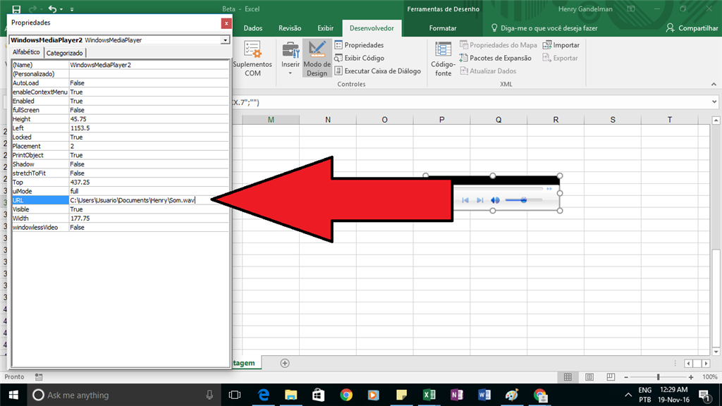 So, I wanted to put a sound effect in my excel, so I went to Developer tab and added an ActiveX Windows Media Player Object
