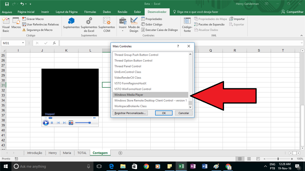 Excel - how to delete ActiveX media player object
