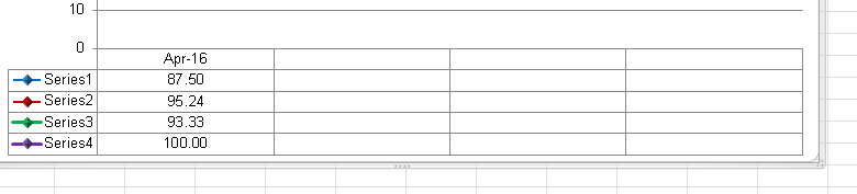 Any ideas what I can do in order to get the August data to appear in the chart. Hovering over one of the lines in the chart displayed the August data. No matter how many months are added beyond Jul, only the Apr-Jul data is displayed in the chart.