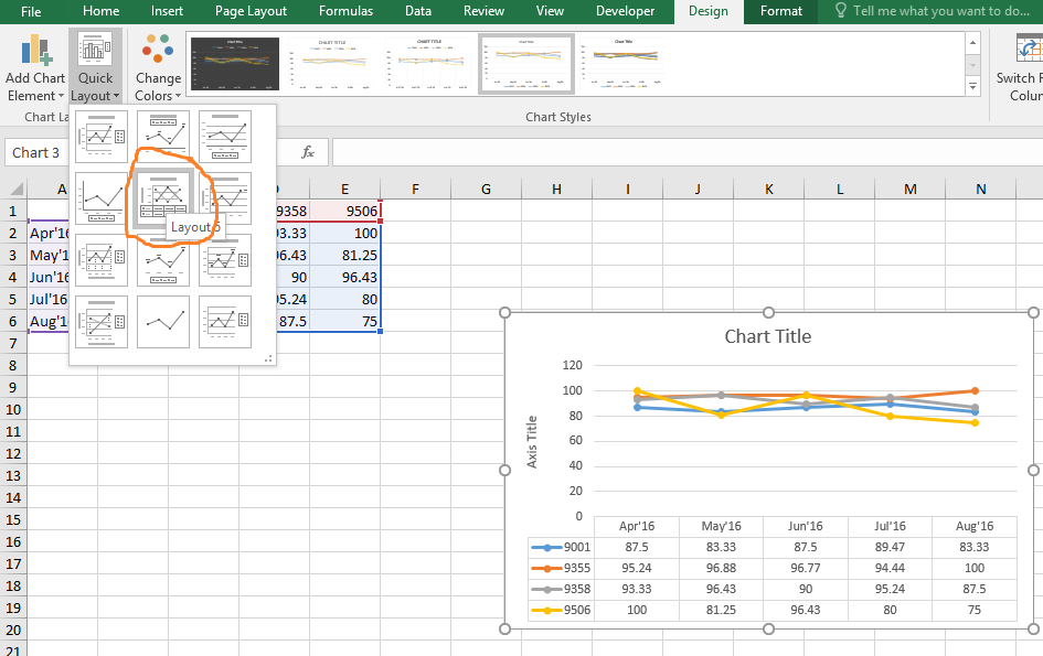 Now go to, "Design > Quick Layout > Layout 5" as shown in below: