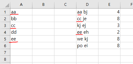 Assuming that the 2 leftmost letters in D are the ones that you want to match in column A.