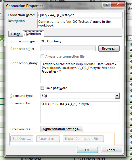 1. Using an OLE DB Query, the Edit Query button is greyed out.