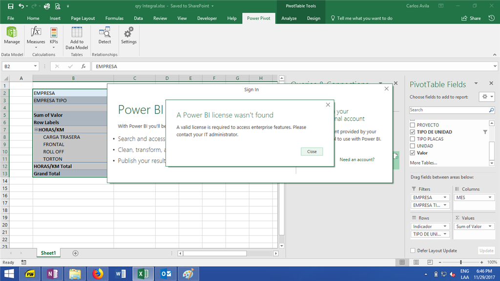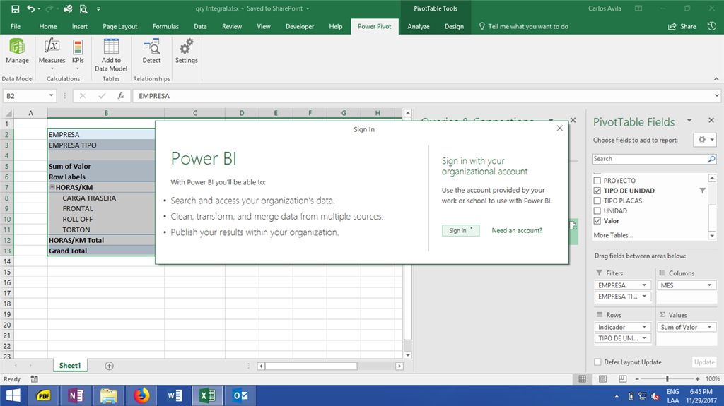 From your screenshot, I found that you didn’t sign into the Excel client. Please try to sign in to the Excel client first, then try to sign into Power BI.