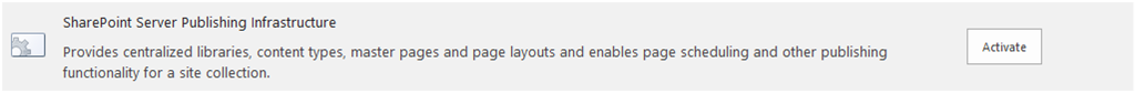 to activate this feature, go to site settings > site collection administration > site collection features > activate sharepoint server publishing infrastructure