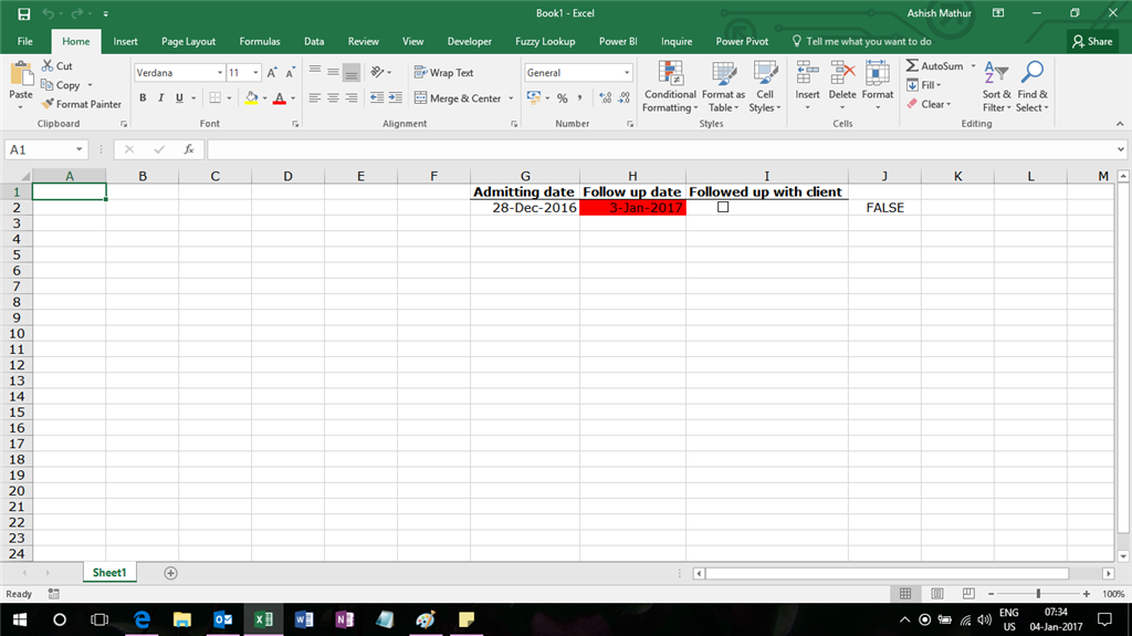 Based on your description, you would like to add conditional formatting in the Excel workbook. When dates in Column H is less than today, highlighting them, otherwise making checkboxes in Column I checked. I would like to follow the steps below to add conditional formatting: