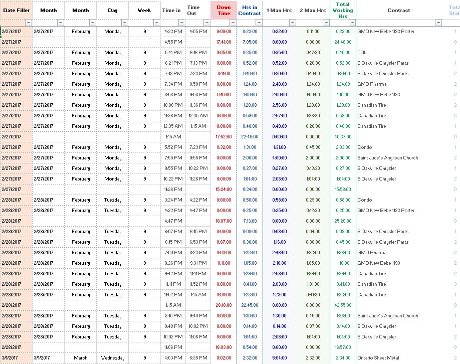 This is something that has been troubling me for a month! As you can see in the image below, I am looking for a possible way of combining the similar data and adding the recorded "Times" for each contract. So sometimes an employee clocks in multiple times on the same date and the time in the contract gets recorded multiple times. I am looking for a way of combining these times so it only shows, and added time duration per date for a given contract.