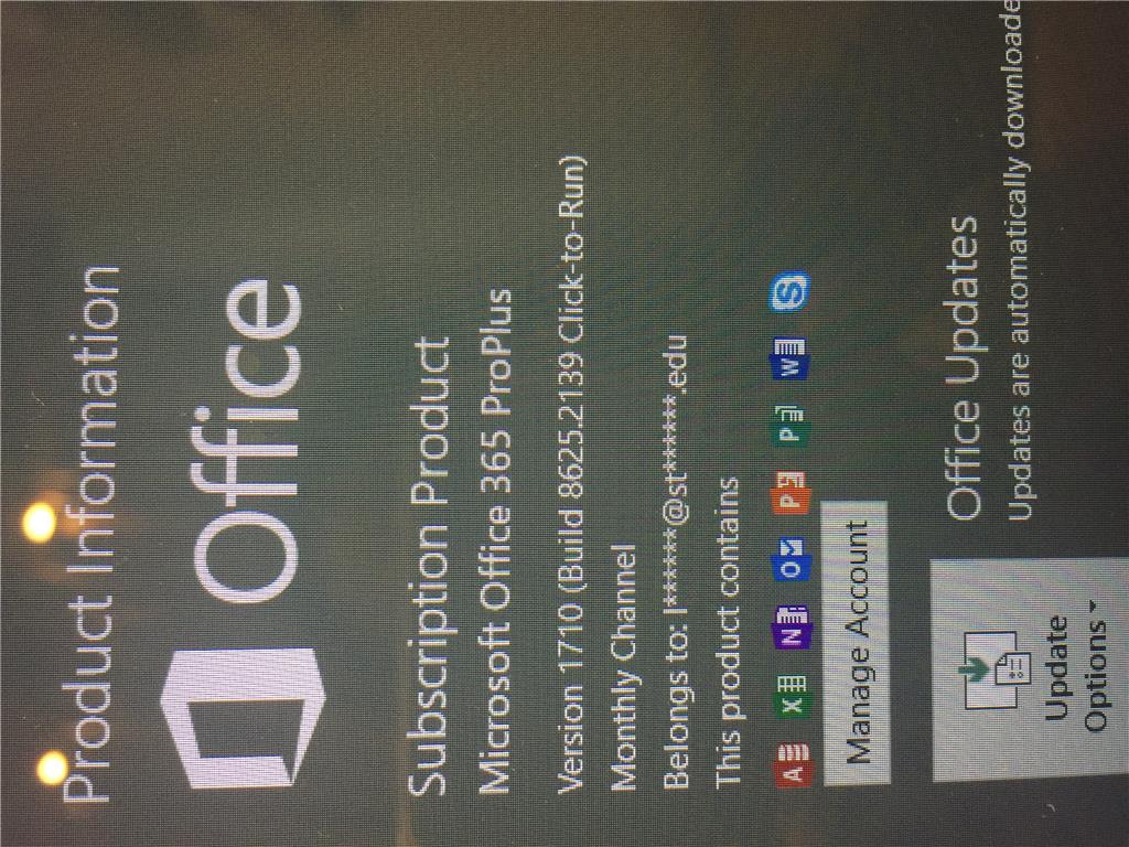 Additionally, your Office is behind updates. I’ll suggest you, please update your Office to the latest version i.e. Version 1710 (Build 8625.2127). To know how to install Office updates, please see Install Office updates. You can check this article about the Office 365 version information.