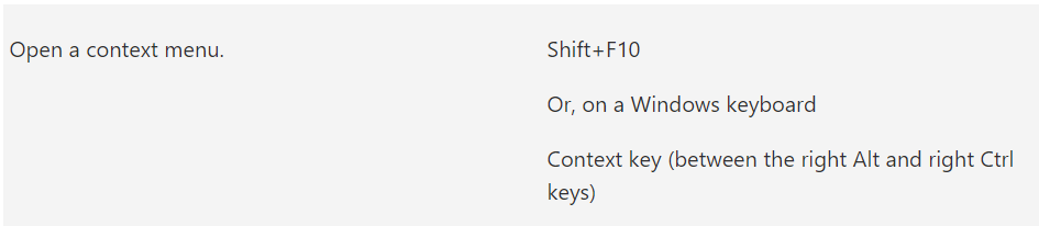 This is what I got when I use the context key with F10. Not what I used to have with the older version. And absolutely not the right click that I mentioned earlier. Please help. Thankst