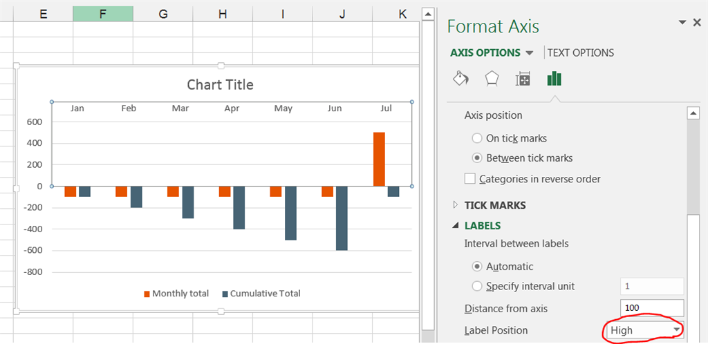 Then under Axis Options ->Labels set the label position to High