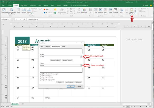 When you get back to the page you cannot “click” on the text in the header or footer.