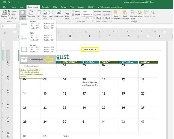 Click Insert > Header & Footer > Chose any option from the drop-downs.