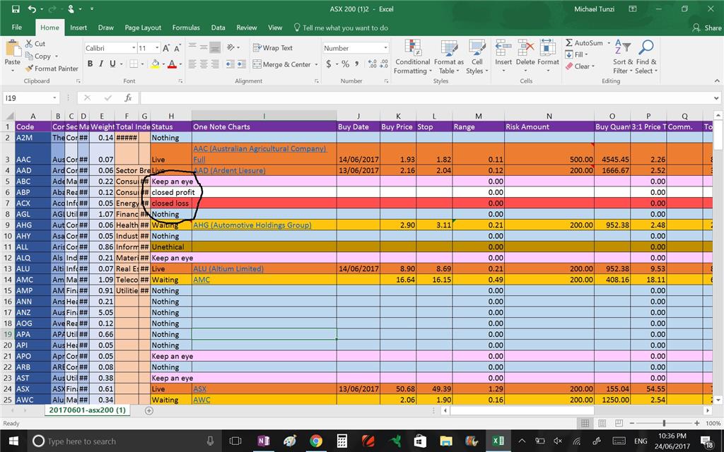 As you can see from above, the formula is exactly the same for all seven terms, but it will not recognise "closed profit" and colour the row green.