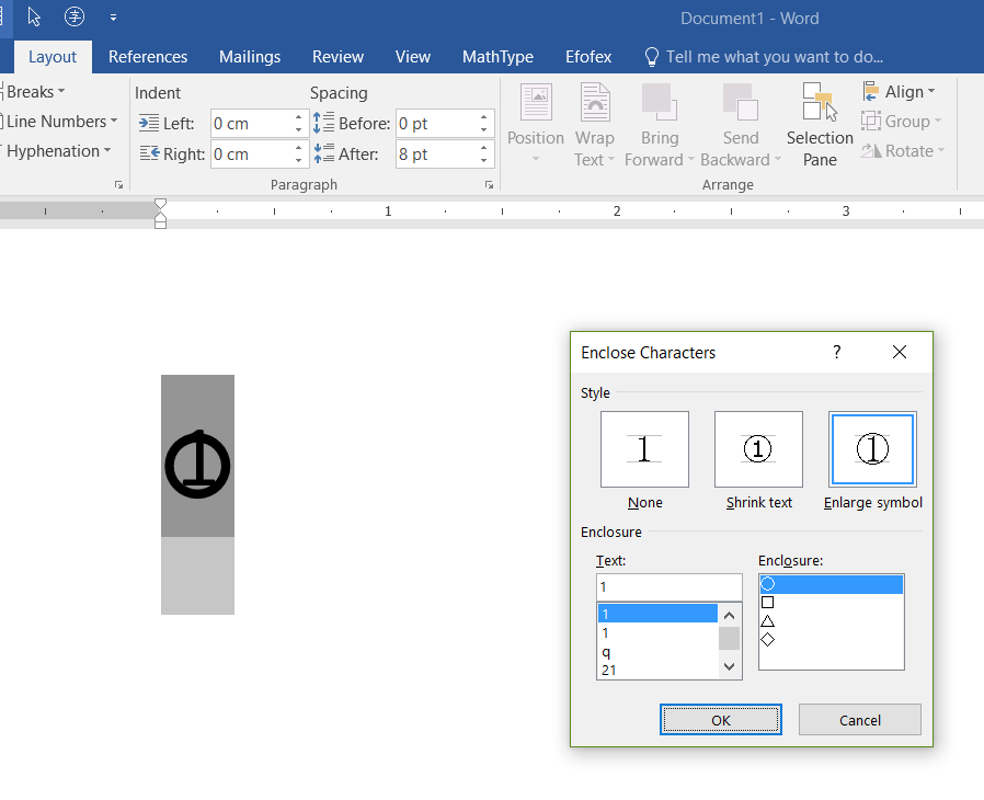 a. leave the font size of the circle (i.e. the Asian font character) as the size you see in the ribbon (i.e. 11 in this case)