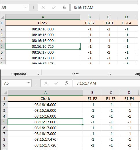 - The 2nd problem is in the data table itself. if i select the a cell in the clock time column, then select the data in the data entry bar at top of table, then leave the cell without editing anything I lose my millisecond decimals. Apparently excel is