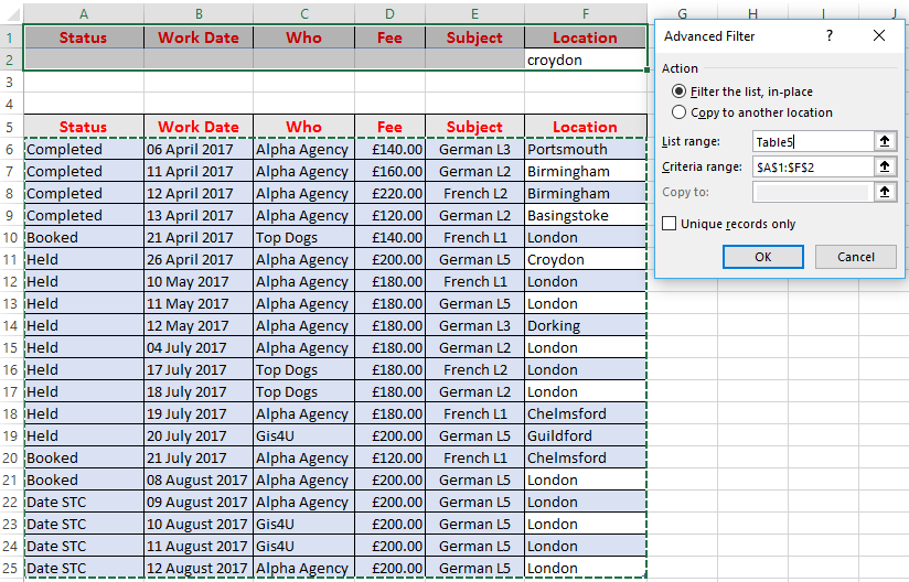 Can anyone help on this? Or should I just always use a range rather than a table when using Advanced Filter?