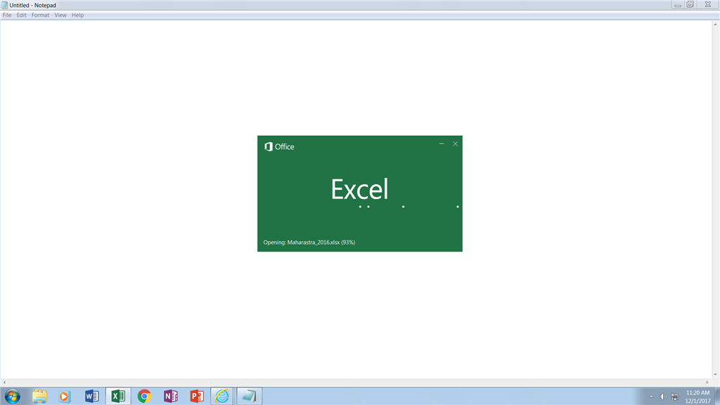 I have an excel file present in my downloads folder and its size is around 50 Mb. When I double click on it, it starts loading but stops at 93% (please see attached screenshot). I have Office 2016 installed and use Windows 7. Please assist. Thanks