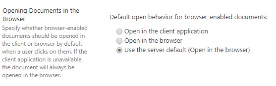 For the issue that “I cannot open the file directly in SharePoint Online (I can only work with the file within the browser)”, please first check if your admin has set the settings below for the document library: