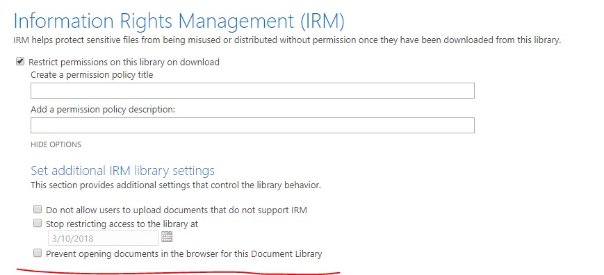 Library settings > Information Rights Management > check if the admin has set any IRM policy to “prevent opening document in the browser for this document library”.