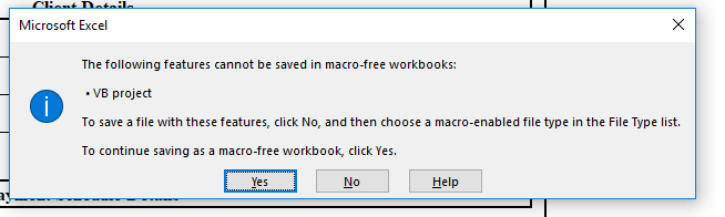 So if you create a new file from this template you have a VBProject, which can not be saved in a XLSX file, hence the error.