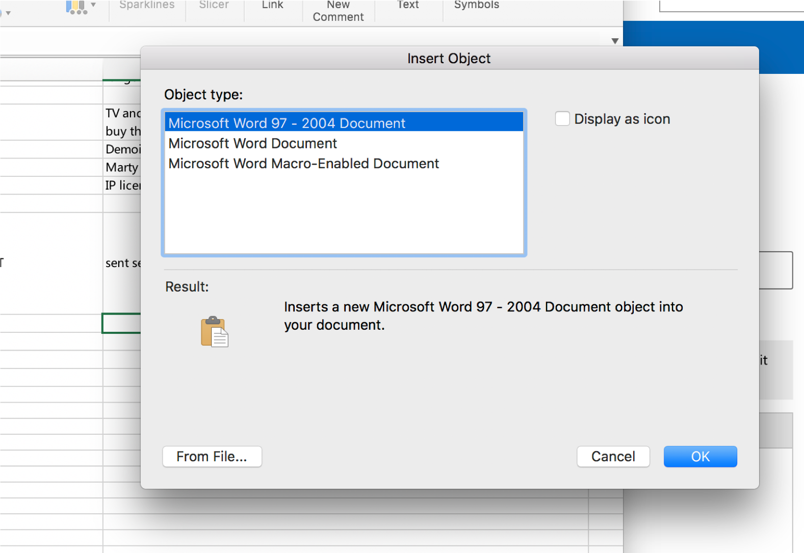 OLE (Object Linking & Embedding) isis severely limited and almost no existent in Office Mac Truth is it been this way for years Back in the day when Mac used C, C++, and Objective-C, OLE work much better. You can insert PDF as a Picture, but it's not editable and limited the first page only. Not sure if OpenOffice types such as Open Office, LibreOffice I am not sure they work any better.