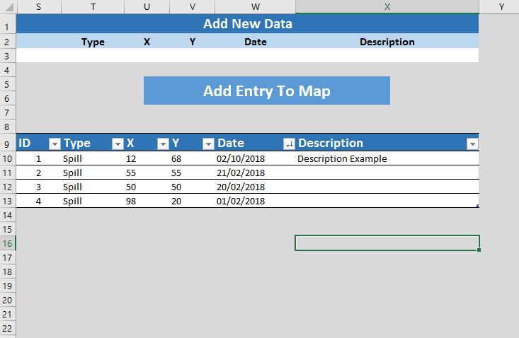the "Add New Data" section. You will also see that there is a test line of code to ensure that the user has entered data in at least one cell in addition to the Id number before it will copy the data to the table. Because the new data is cleared after copying,