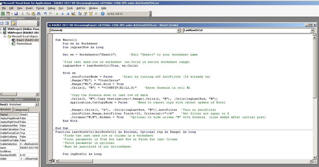 What line(s) do I need to modify? The report I'm applying this to is a video streaming report that updates daily across multiple titles so that data fields increase daily. For example there are now a total of 4655 rows