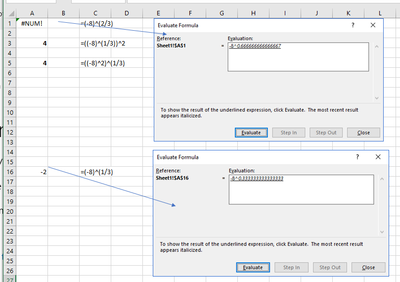 Why can Excel find (-8)^(1/3) but not (-8)^(2/3) ?