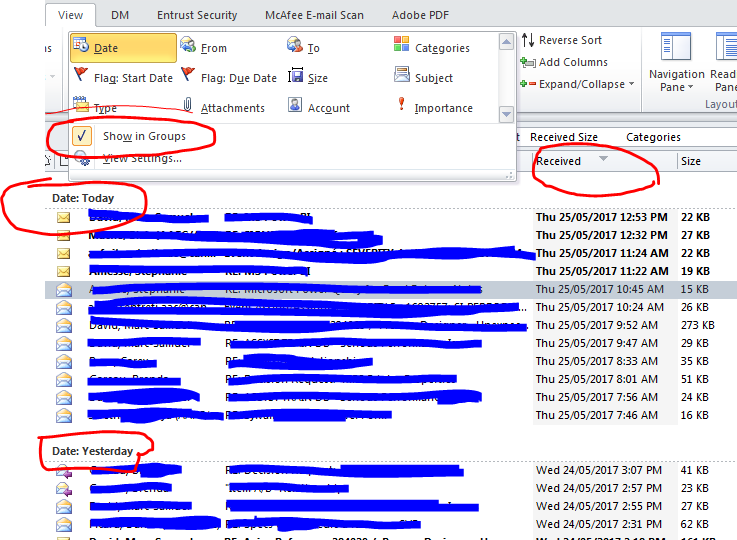 If you want another analogy of what I want to do, this kind of grouping exists in MS Outlook. For example, in OL, if you have the View option "Show in Groups" selected, the list of emails automatically have an header based on the Sorted Columns (here in this example, the emails are sorted by Date, and there is a grouping for "Today", "Yesterday", "Other days", "Last Week", and so on... like in the following example.