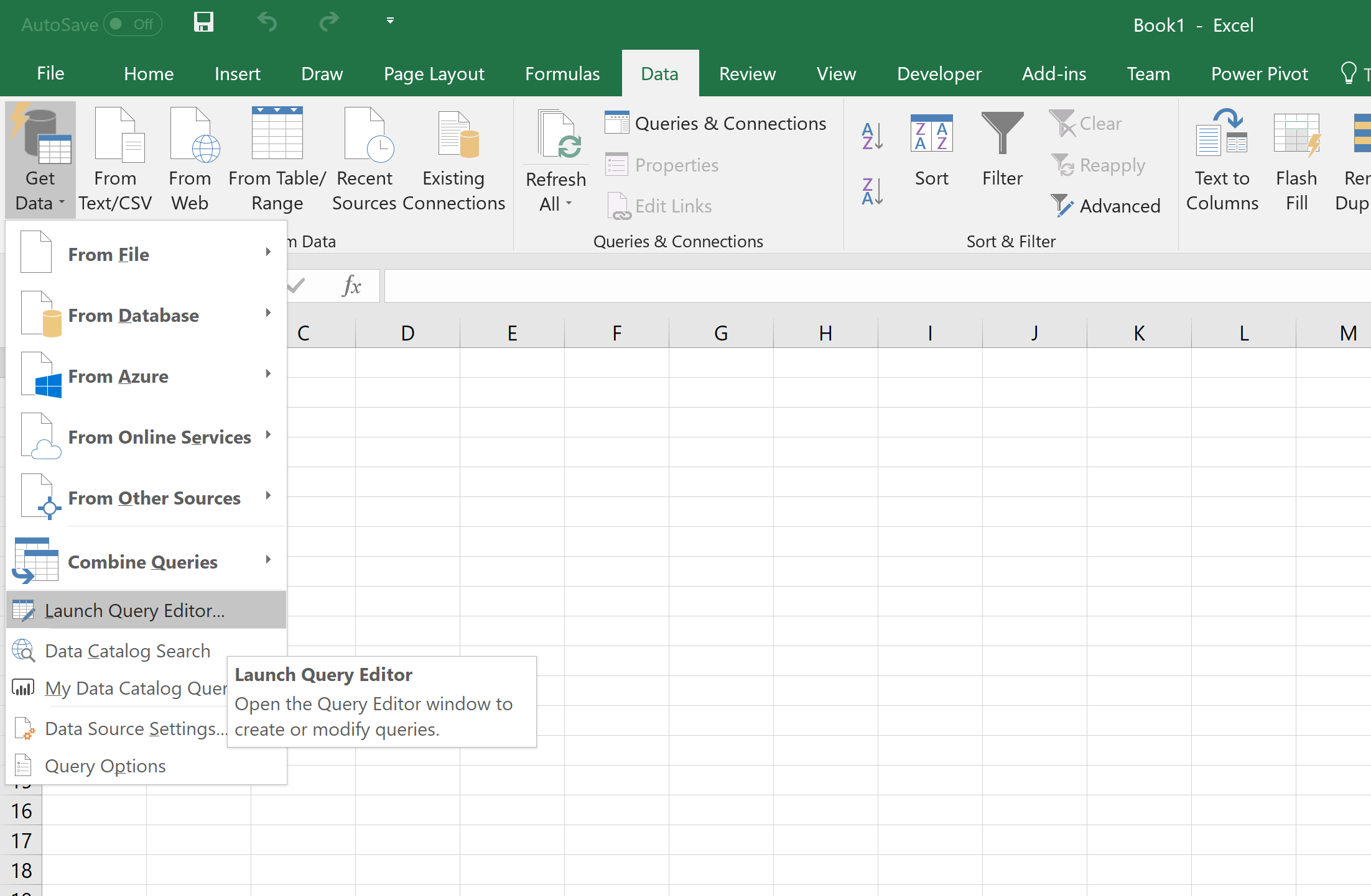 I wished to access the Power Query functionality, however this is no present under the Data heading in the ribbon.