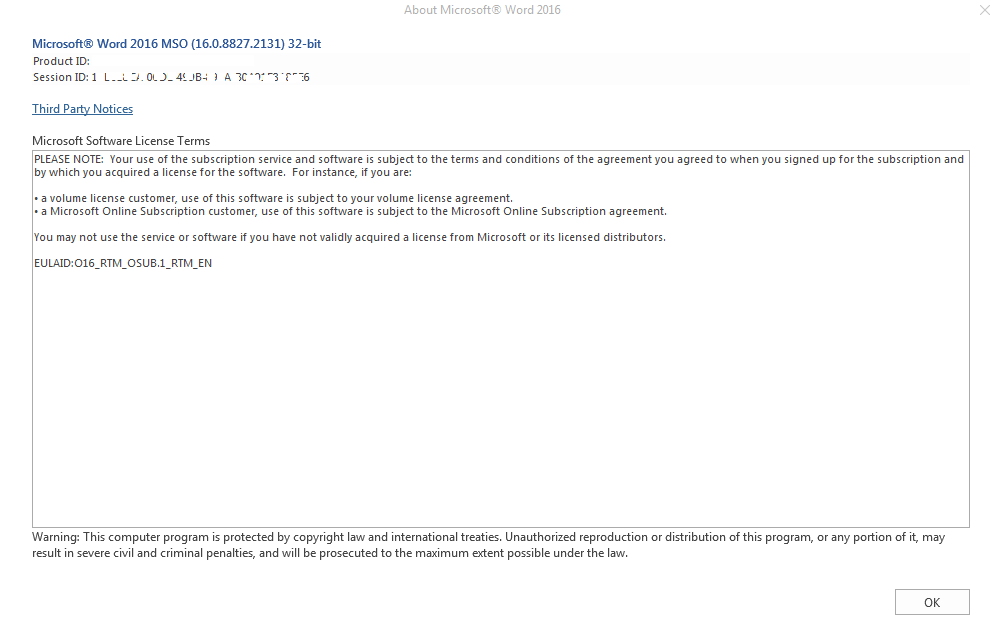Word Version 2016 - 32 bit (Click to Run)
