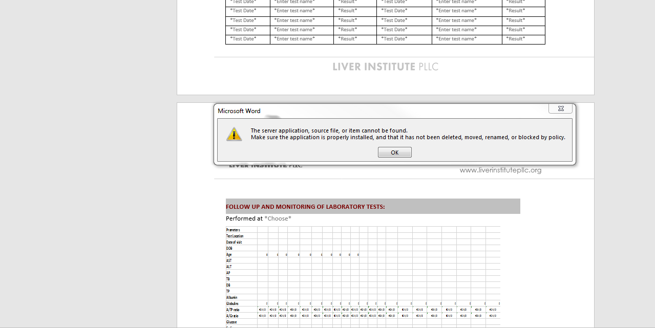 I keep getting a error stating the server application, source file, or item cannot be found. Make sure the application is properly installed, and that it has not been deleted, moved,renamed, or blocked by policy.